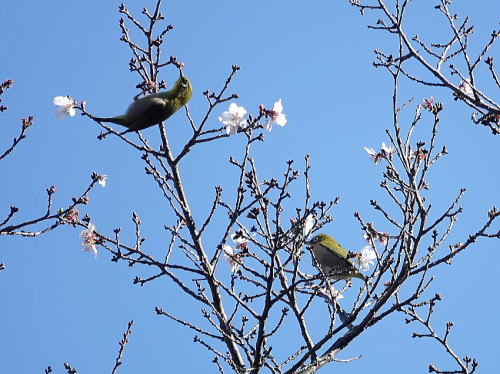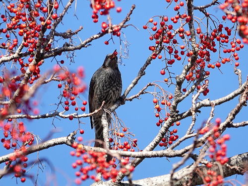 | メジロ[12月20日] 数羽が十月桜を吸蜜していました。そこへツミが襲ってきました。パニックになっていましたがメジロは無事でした。 | ヒヨドリ[12月20日] イイギリの実を食べに入れ替わり立ち替わりやって来ます。 | |