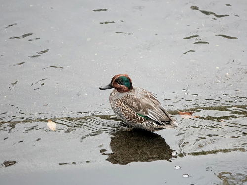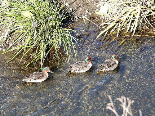 | ダイサギ[12月1日] 見事キャッチ! | コガモ[12月1日] 換羽中が数羽居ました。 |