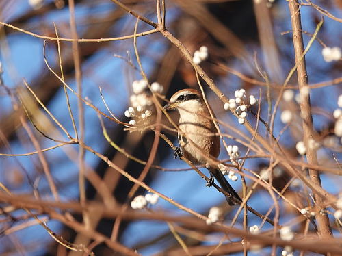 | カワセミ[12月24日] 上から覗いたので飛んで行ってしまいました。 | モズ[12月24日] モズだけはよく見かけます。 | |