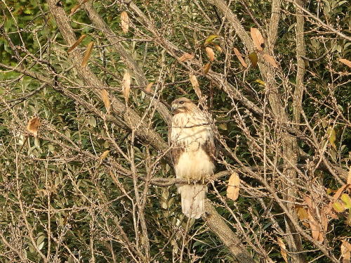 | オオバン[12月14日] 夢中で食べています、今日は5羽見かけました。 | ノスリ[12月13日] ゆっくりくつろいでいる様子でした。 | |