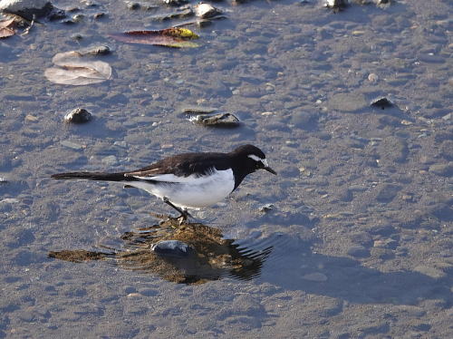| オオバン[12月24日] せっせと葉っぱを食べています。 | セグロセキレイ[12月24日] 餌を探しています。 | |