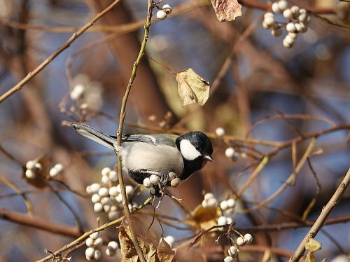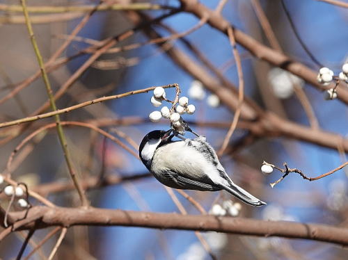 | ヤマガラ[12月25日] 見かけたのは暫くぶりです。 | シジュウカラ[12月25日] ナンキンハゼの実を次から次へと齧っていきます。 | |