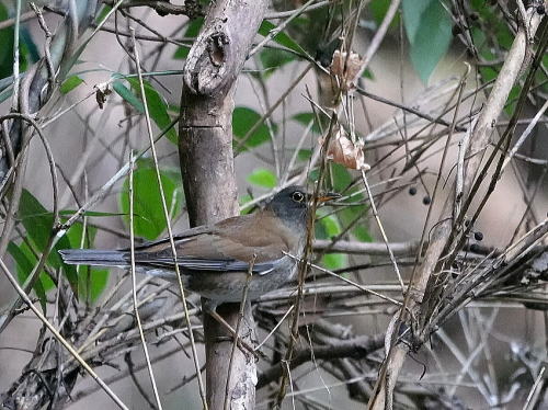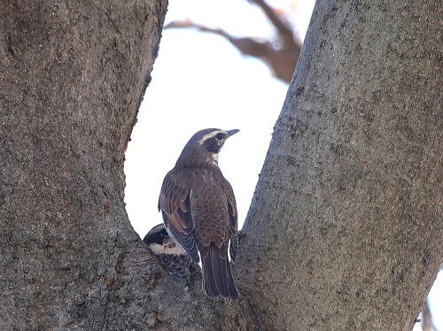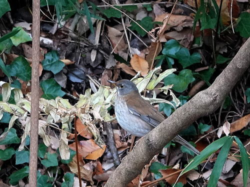 | ツグミ[12月25日] 2羽いました。分かりにくいですが顔が少し見えています。 | シロハラ[12月25日] 続いてやって来て欲しいですね。 | |