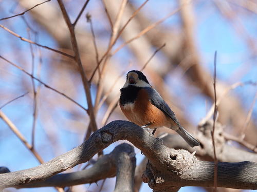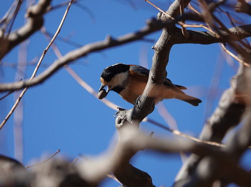 | ヤマガラ[12月27日] ナンキンハゼの実も取ってきて食べていました。 | ヤマガラ[12月27日] 囀りとは言えませんがピーピー鳴いていました。 | |
