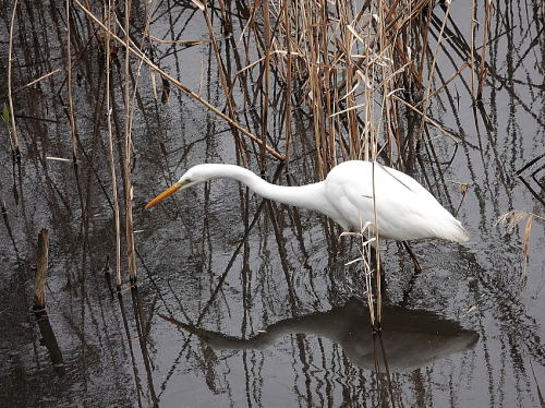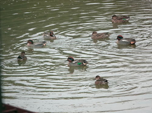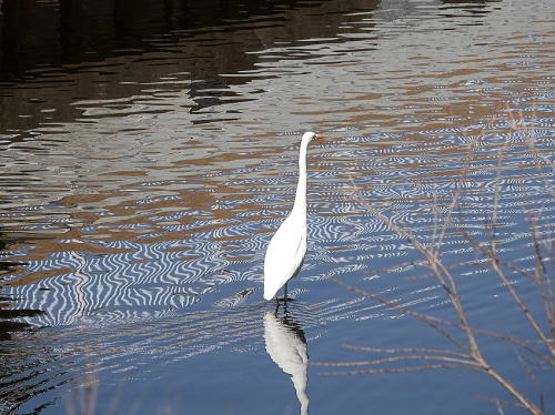 | コガモ[2月7日] ピーピーと賑やかになって来ました。 | ダイサギ[2月7日] 首の長さが有利です。 | |