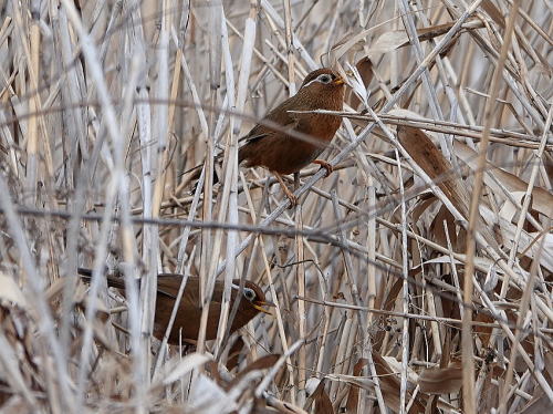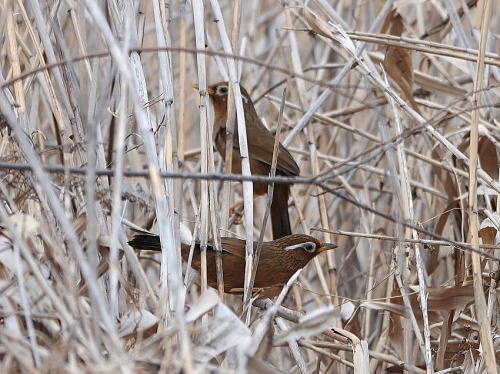 | ガビチョウ[2月19日] もう1羽現れ益々賑やかに! | ガビチョウ[2月19日] ひとしきり鳴き交わしていました。 | |