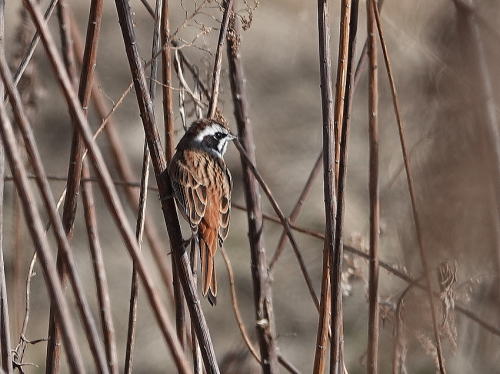 | ツグミ[2月12日] 群れは解消されたようです。 | ホオジロ[2月12日] 一時ほど見かけなくなりました。 | |