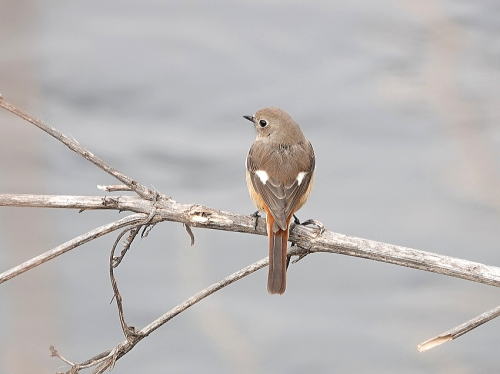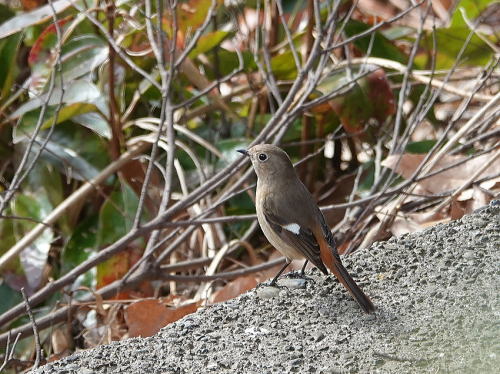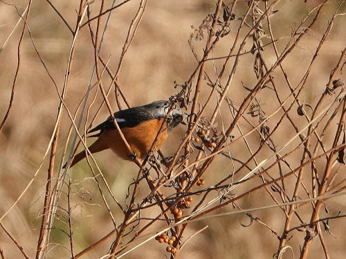 | ジョウビタキ[2月16日] ヘクソカズラの実を食べているようです。 | ジョウビタキ[2月16日] 満腹したのか一休み。 | |