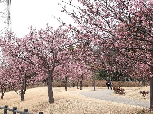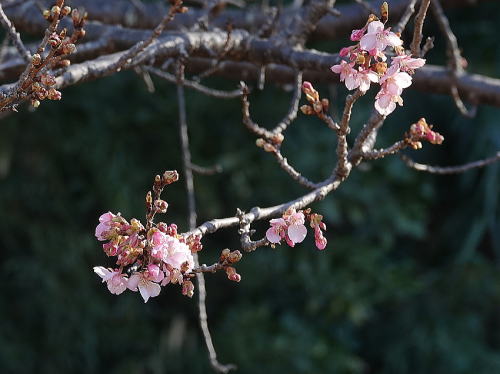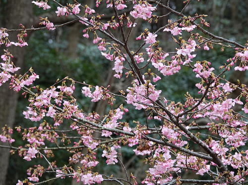 | バン[2月14日] 草は食べ尽くされた感があります。 | カワヅザクラ[2月14日] 五分咲き位の木がありました。 | |