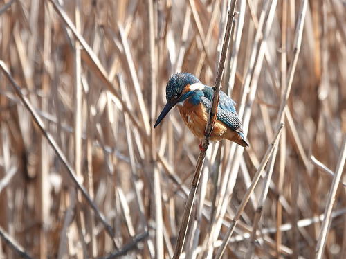 | モズ[2月1日] 何かを狙っています。 | カワセミ[2月1日] 一度飛び込みましたが獲物無し。 | |