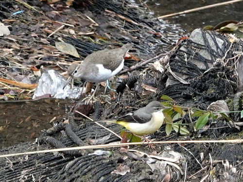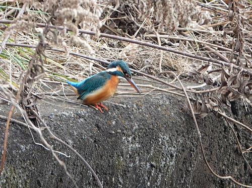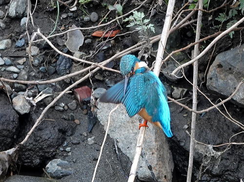 | イソシギ、キセキレイ[2月14日] 一瞬のすれ違いでした。 | カワセミ[2月14日] 何度か飛び込んだ後羽繕いを始めました。 | |