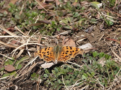 | キタテハ[2月18日] 暖かさに誘われて出て来たようです。 | しだれ梅[2月18日] もう直ぐ満開です。 | |