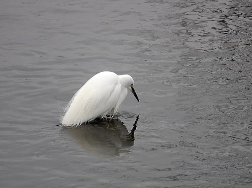 | セグロセキレイ[2月14日] 時々綺麗な声を出していました。 | コサギ[2月14日] 長い間、水面を見つめたままでした。 | |