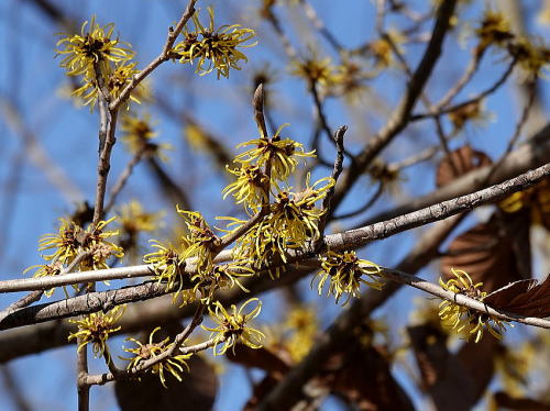 | カワヅザクラ[2月6日] 1本だけ咲き始めた木がありました。 | マンサク[2月6日] 満開でした。 | |