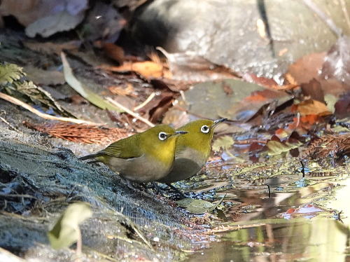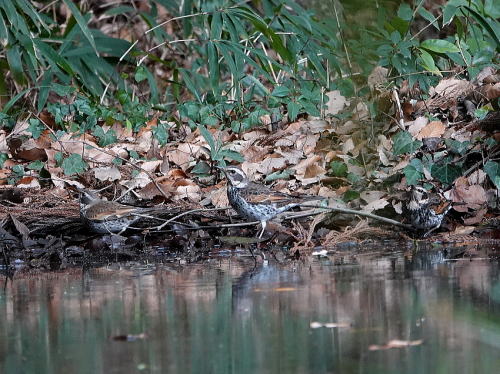 | メジロ[2月4日] 残り少ないムラサキシキブの実を食べに来ました。 | ツグミ[2月4日] 群れで採餌、水飲みしています。 | |