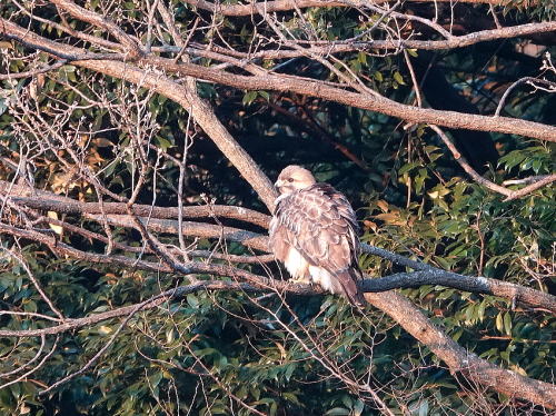 | アオジ[2月6日] 完全に保護色です。 | ノスリ[2月5日] 高い所から獲物を狙っているようです。 | |