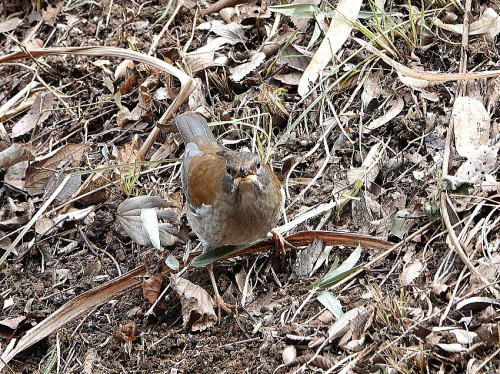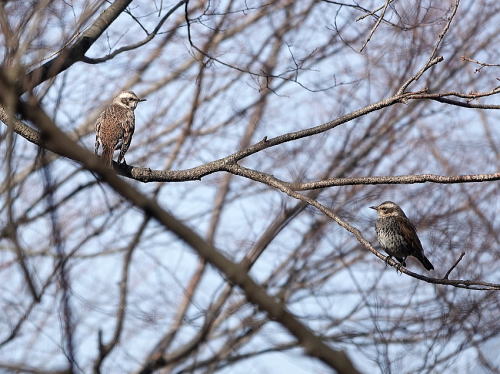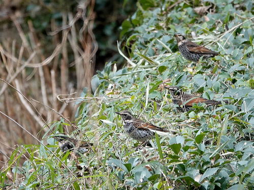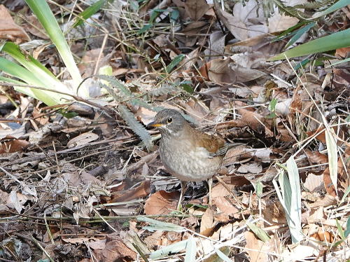 | シロハラ[2月2日] 小さな黒い実を見つけました。 | ツグミ[2月2日] 何故か群れていました。 | |