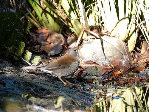 | ウグイス[2月4日] 直ぐに植込みの中に隠れて撮らせてもらえません。 | シロハラ[2月4日] 食後の水飲みしています。 | |