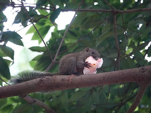 | タイワンリス[2月24日] なんと大きなツバキの花を食べていました。 | オニシバリ[2月24日] 小さな小さな花です。 | |