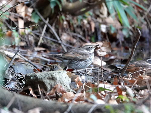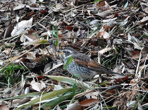 | ホトケノザ[2月12日] 日向で咲いています。 | シロハラ[2月11日] 動きがちらっと見えたのですが、明るい所には出て来ません。 | |