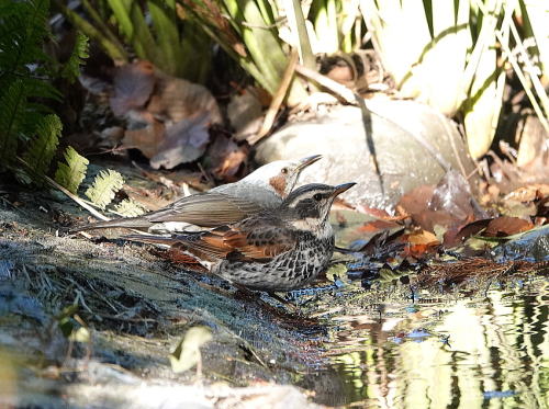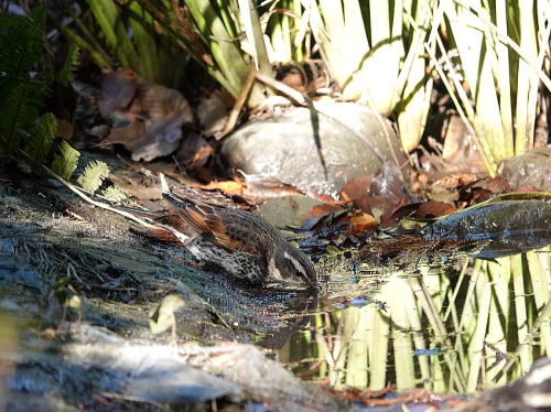 | ツグミ、ヒヨドリ[2月4日] いろんな鳥が水飲みにやって来ます。 | ツグミ[2月4日] 水を飲むのもそう簡単ではありません。 | |