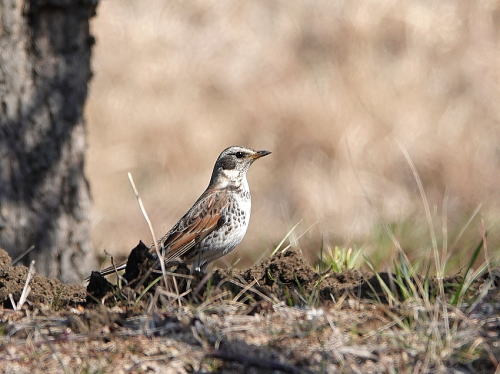 | モズ[2月18日] 今日は♀がいました。 | ツグミ[2月18日] ぽつぽつ見かけるようになりました。 | |