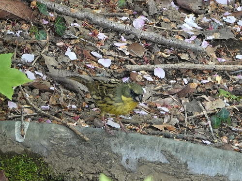 | アオジ[4月5日] 何時まで居てくれるでしょう。 | ガビチョウ[4月5日] せっせと採餌中でした。 | |