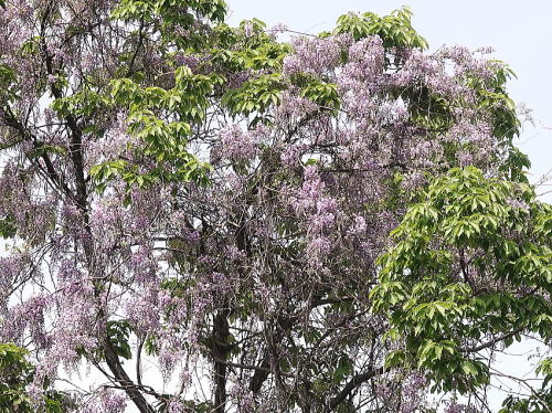 | ツミ[4月18日] 食事中でした。 | フジ[4月18日] 高い木の天辺迄伸びて満開でした。 | |