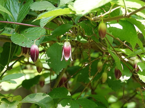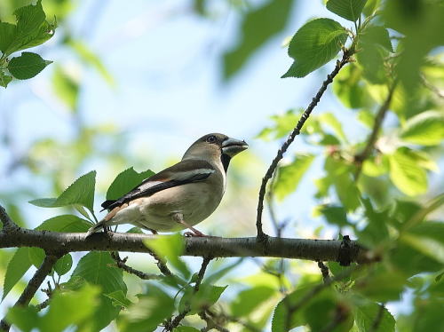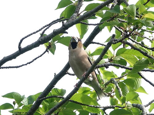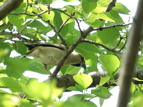 | ハンショウヅル[4月20日] やっと花が開き始めました。 | シメ[4月19日] キビタキが来たよ、と教えて頂きました。夏羽のシメがいました。 | |