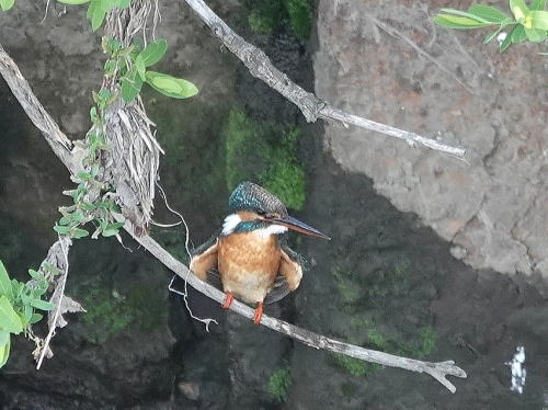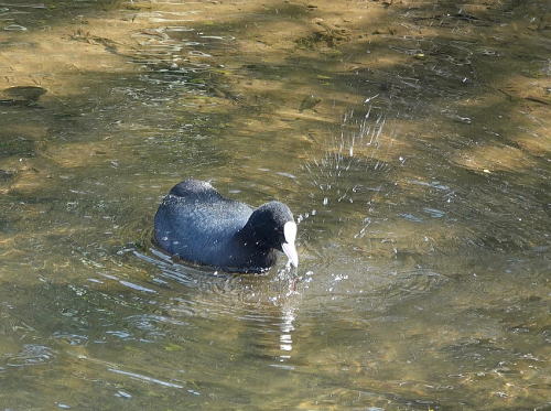 | オオバン[4月1日] 水草をとって食べていました。未だ数羽居ます。 | カワセミ[4月1日] 何度か飛び込んだと思ったら水浴びでした。 | |