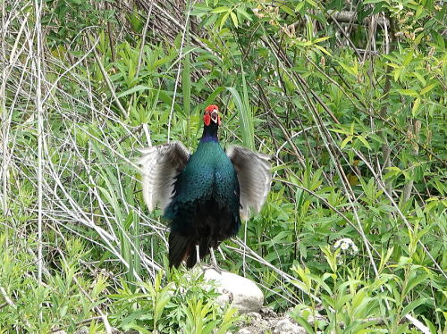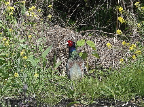 | キジ[4月8日] 菜の花の裏に隠れて母衣打ちしていました。 | シジュウカラ[4月8日] 今日は暑かったー。 | |
