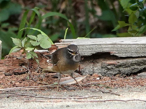 | マミチャジナイ[4月11日] 夕方、アカハラかなと思いましたが、眉班がありました。 | マミチャジナイ[4月11日] カナヘビのようなものを獲りました。 | |