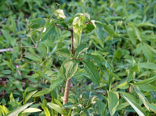 | アマドコロ[4月9日] 開花していました。 | ホウチャクソウ[4月9日] 開花し始めたばかりです。 | |