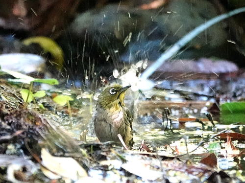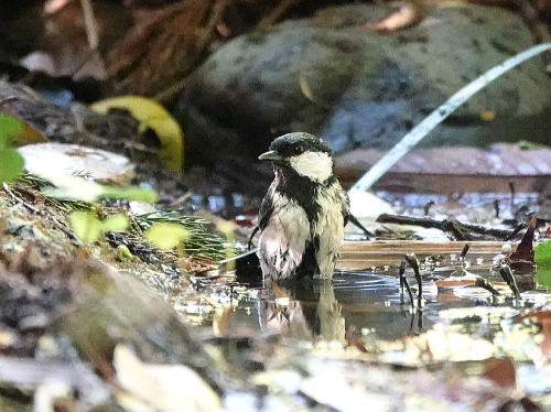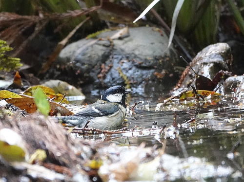 | メジロ[4月27日] 2羽でやって来て豪快に水浴びです。 | シジュウカラ[4月27日] びしょ濡れです、乾くまで時間が掛かるのでは。 | |