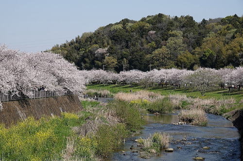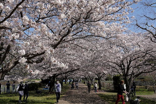 | 親水公園の桜[4月1日] 早く開花したのですが未だ満開が続いています。 | 親水公園の桜[4月1日] 今日も大勢の人で賑わっていました。 |