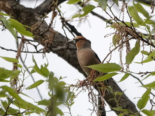 | アカハラ[4月12日] 一度だけ囀りを聞かせてくれました。 | シメ[4月12日] 高い木の上で強風に揺られていました。 | |