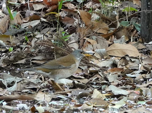| マミチャジナイ[4月11日] 渡り途中の立ち寄りでしょう。 | マミチャジナイ[4月11日] せっせと獲物を探していました。 | |