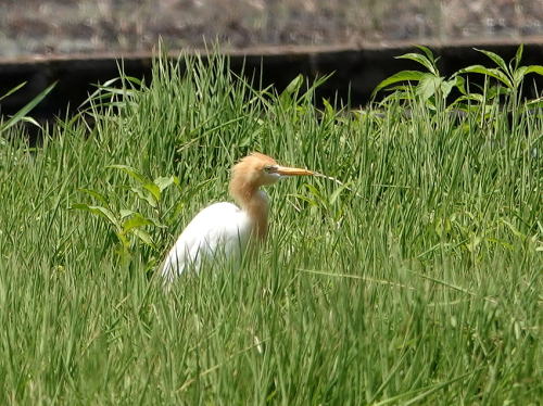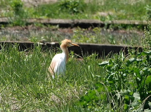 | アマサギ[5月9日] 来ているよと教えて頂きました。 | アマサギ[5月9日] 着いたばかりのようで、休憩している様子でした。 | |