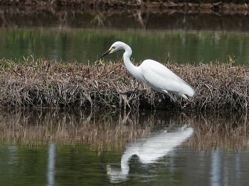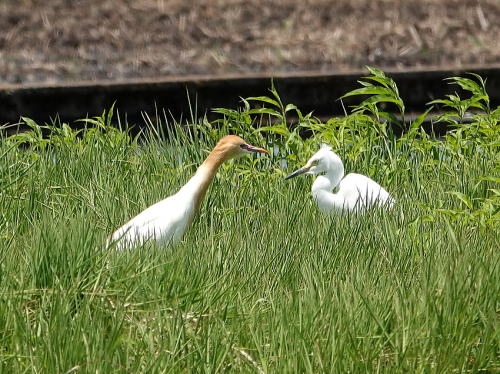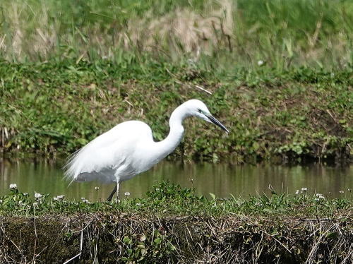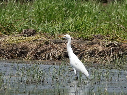| ダイサギ[5月24日] 田んぼにはダイサギ1羽と、 | チュウサギ[5月24日] チュウサギ1羽がいるだけでした。 | |