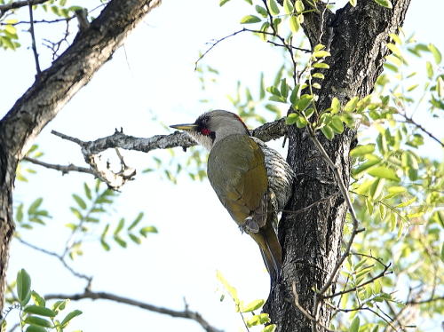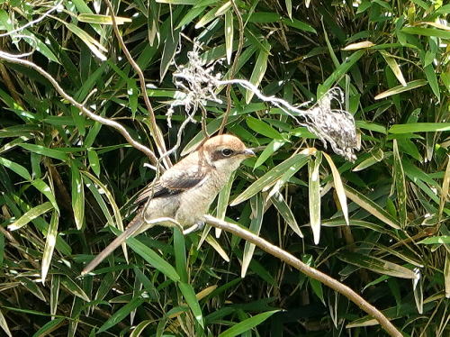 | アオゲラ[5月12日] 声は時々聞こえていましたが、やっと見つけました。長い間辺りをきょろきょろしていました。 | モズ[5月12日] 幼鳥でしょう、餌獲りの練習をしていました。 | |