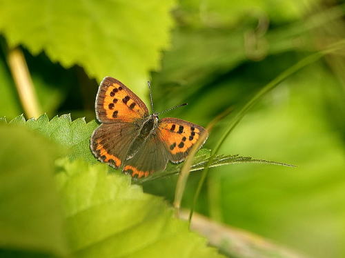 | ベニシジミ[5月27日] 小さいけれど目立ちます。 | モンキアゲハ[5月27日] 羽が痛んでいます。見かける蝶も少ないです。 | |