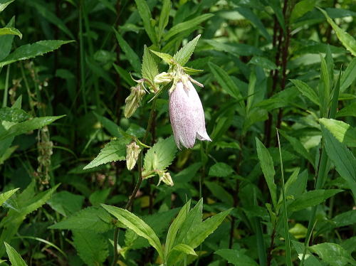 | コチドリ[5月19日] 隠れやすいように草むらのそばで採餌しています。 | ホタルブクロ[5月18日] 気が早いのかもう咲いていました。 | |