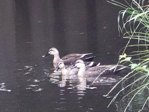 | オナガ[5月24日] 少し騒がしいのですが。 | カルガモ[5月24日] 仲良し3羽組でしょうか、一寸関係が分かりません。 | |