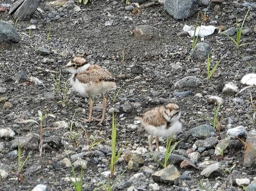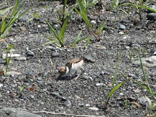 | コチドリ[5月17日] 親のお腹に潜り込んだり、 | コチドリ[5月17日] 餌を探して歩き回っていました。 | |