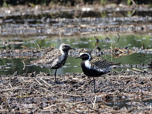 | ムナグロ[5月10日] 来ているよと教えて頂きました。休憩中のようです。 | ムナグロ[5月10日] しばらくたつと歩き回ります。 | |