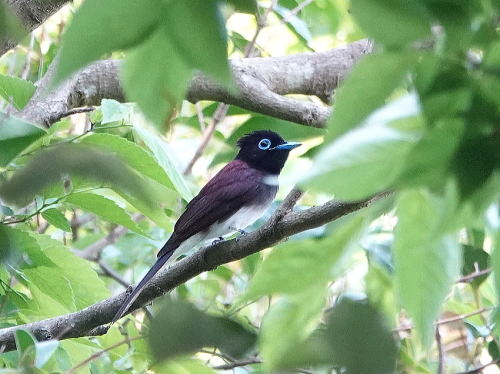 | アカボシゴマダラ?[5月18日] 道路の植え込みに産卵に来ていたようです。 | サンコウチョウ[5月17日] 来ているよと教えて頂きました。 | |