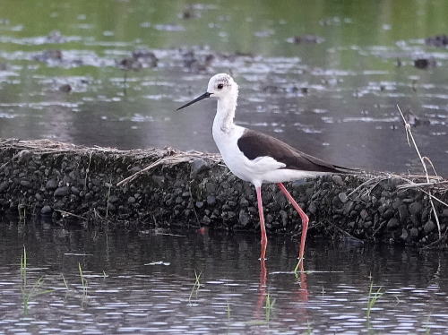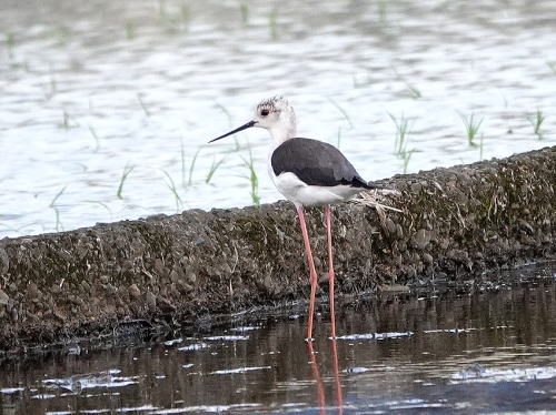 | セイタカシギ[5月26日] 気に入った田圃でせっせと採餌中でした。 | セイタカシギ[5月25日] 夕方、来ているよと教えて頂きました。1羽だけでした。 | |