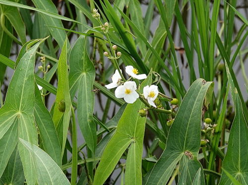 | オモダカ[8月1日] 花はそろそろ終わりのようです。 | ヒレタゴボウ[8月1日] ぽつりぽつりと咲き始めました。 | |