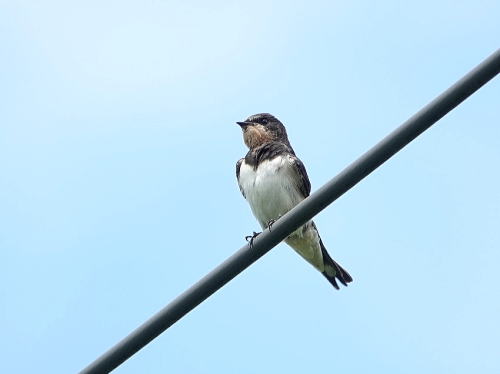 | コサギ[8月22日] 暑いからでしょうか鳥を見かけません。コサギも貴重です。 | ツバメ[8月22日] 幼鳥でしょう。電線に1羽だけでいました。 | |