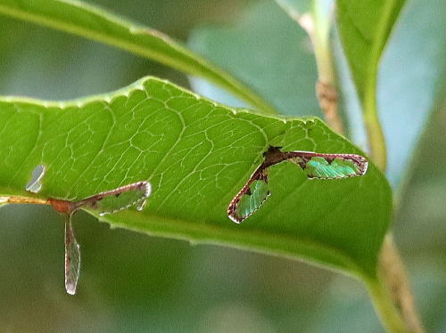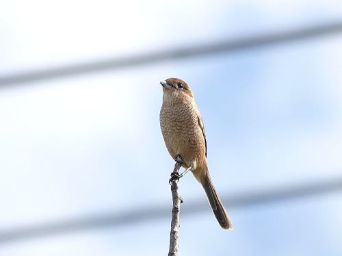 | アヤヘリハネナガウンカ[9月25日] 未だ居たよと教えて頂きました。自分では絶対に見つけられません。 | モズ[9月22日] 電線や高い木の上などでキーキー鳴いています。 | |